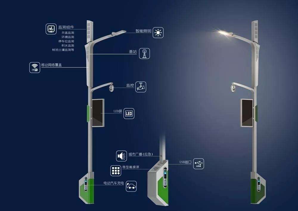 智慧路燈作為智慧城市的終端,也是5g基站布局的載體。在具有基礎照明功能外,還將實現5G基站、WIFI覆蓋、環境監測、視頻監控等功能,成為“城市大腦”運行的重要神經網絡。