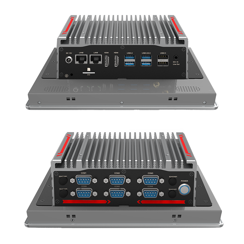 外觀時尚:鋁合金一體成型,結構緊湊小巧,工藝精細,科技時尚低功耗:英特爾® 賽揚® J6412 板載處理器,TDP 10W穩定可靠:純工業設計,優良的散熱結構,全密封鋁合金箱體,大面積鋁鰭散熱,機箱可抗接觸式6KV強電磁干擾接口豐富: 2*HDMI,2*LAN(Intel I225),6*COM,3*USB3.0,3*USB2.0,1*SIM槽,1*2.5寸硬盤位,1*音頻Line-Out+MIC二合一(OMTP國家標準),1*M.2(Key-M,2280,PCIE x2 NVME SDD),1*M.2(Key-B,3052,USB3.0+USB2.0支持4G、5G模塊),1*MPCIE(全高,PCIE+USB2.0,支持WIFI+BT/網卡),2*天線孔(WiFi與4G二選一)界面友好:純屏10點工規電容觸控,操作更便利