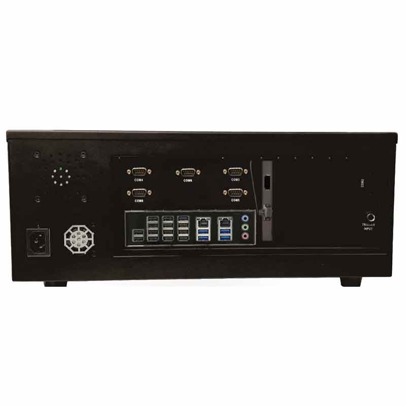 接口豐富:1*HDMI(獨顯接口),2* LAN(千兆),6*RS232,20*USB(14*USB2.0;6*USB3.0),1*MIC in,1* Line out,1* Line in,1*金屬帶燈開關,1*PS/2