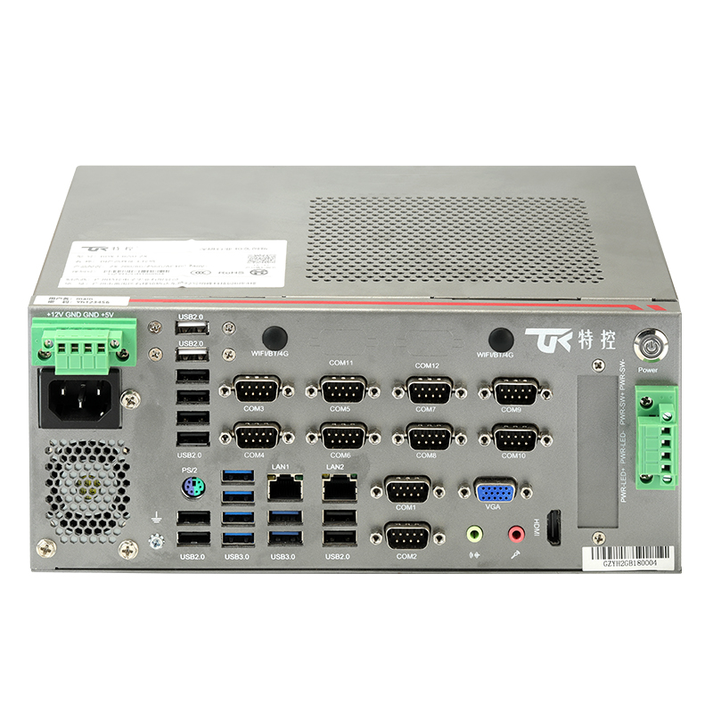 接口豐富 : 2*LAN, 10*COM, 20*USB, 1*PS/2, 1*遠 程 開 關(guān) , 1*4PIN鳳 凰 端 子 供 電 , 1*VGA, 1*HDMI, 1*4PIN 遠程開關(guān)1*SIM槽 , 1*LINE OUT, 1*MIC, 2*2.5寸 硬 盤 位 , 1*M.2( 2230, PCIE+USB2信 號 , 支 持 1*4PIN 鳳凰端子供電(+12V/+5V)WiFi/BT/4G),1*PCIE X16