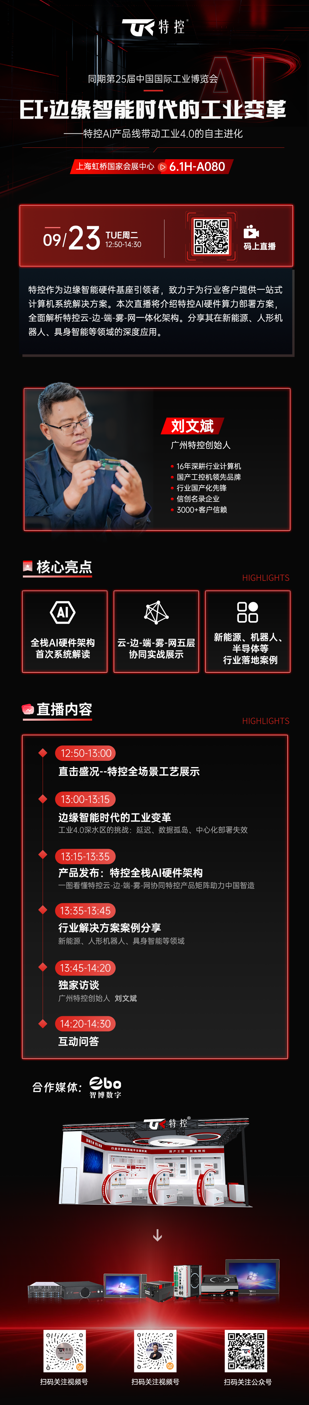 特控作為邊緣智能硬件基座引領者,致力于為行業客戶提供一站式計算機系統解決方案。本次直播將介紹特控AI硬件算力部署方案全面解析特控云-邊-端-霧-網一體化架構。分享其在新能源、人形機器人、具身智能等領域的深度應用。