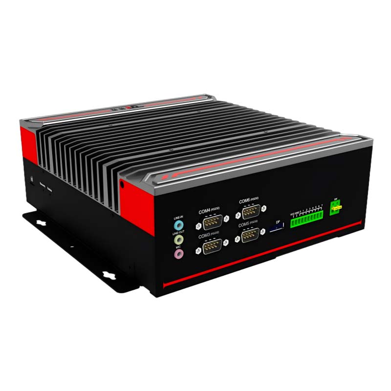 高性能 : 支持65W及以下10/11代LGA1200 Intel Core i7/i5/i3 系列處理器 穩定可靠 : 純工業設計,強勁解熱熱管與純銅一體化的優良散熱結構,全密封鋁合金箱體,大面積鋁鰭散熱,可實現橫向與豎向等多種放置的自然對流散熱,機箱可抗接觸式6KV強電磁干擾,DC12V-24V寬壓輸入接口豐富 : 4*LAN(Intel),6*COM,支持T-MOD模塊擴展,8*GPIO(2*RJ45/2*CAN/12DI+12DO三選一擴展 ) ,4*USB3.0+4*USB2.0 1*VGA,1*HDMI,1*DP,1*遠 程 開 關 ,1*一 鍵 還 原 ,1*一 鍵 備 份 ,1*SIM槽, 1*LINE IN,1*LINE OUT,1*MIC,1*2.5寸硬盤位,1*M.2(KEY-M,2280,PCIEx4 支持SATA) , 1*M.2( KEY-B,3042/3052, PCIE+USB3.0支 持 4G/5G) , 1*MINI PCIE( 全 高 ,PCIE+USB2.0信號,支持WiFi/BT)外觀設計 : 鋁合金一體成型,結構緊湊,MiNi小巧,工藝精細,科技時尚